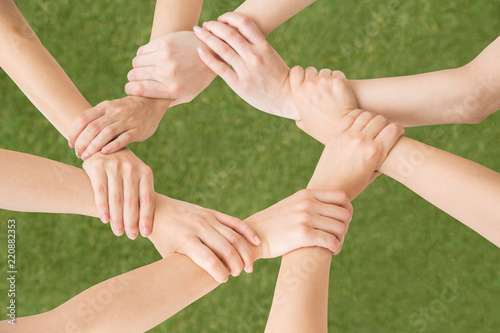 手をつなぎ円陣を組む人々 イラスト素材 フォトライブラリー Photolibrary
